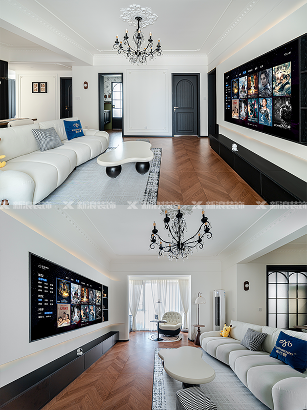 用法:用于天花板、石膏線、以及部分墻面。這是法式風格的基底,能瞬間提亮空間,與黑色形成經典對比,增強視覺層次。