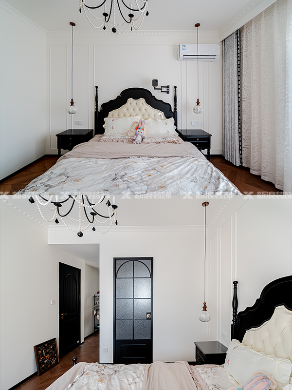 臥室墻面:精美的石膏線框墻是法式的靈魂,勾勒出清晰的層次和立體感。